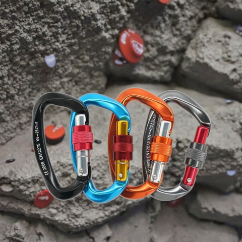 Mosquetón de escalada en roca tipo D de aluminio de aviación 25KN, bloqueo de seguridad colgante rápido para montañismo al aire libre